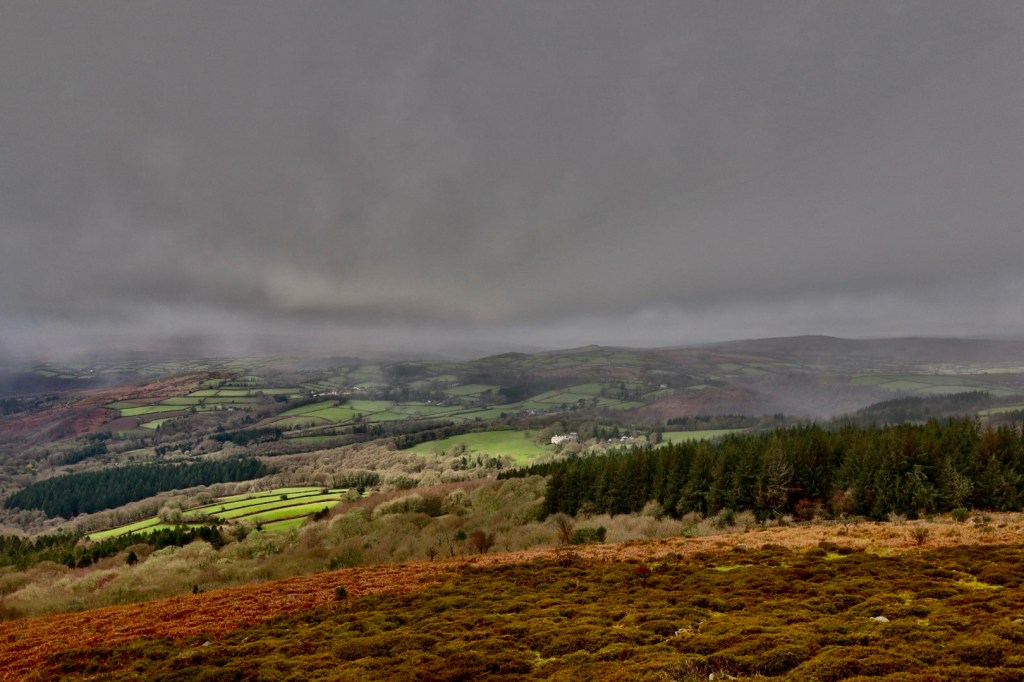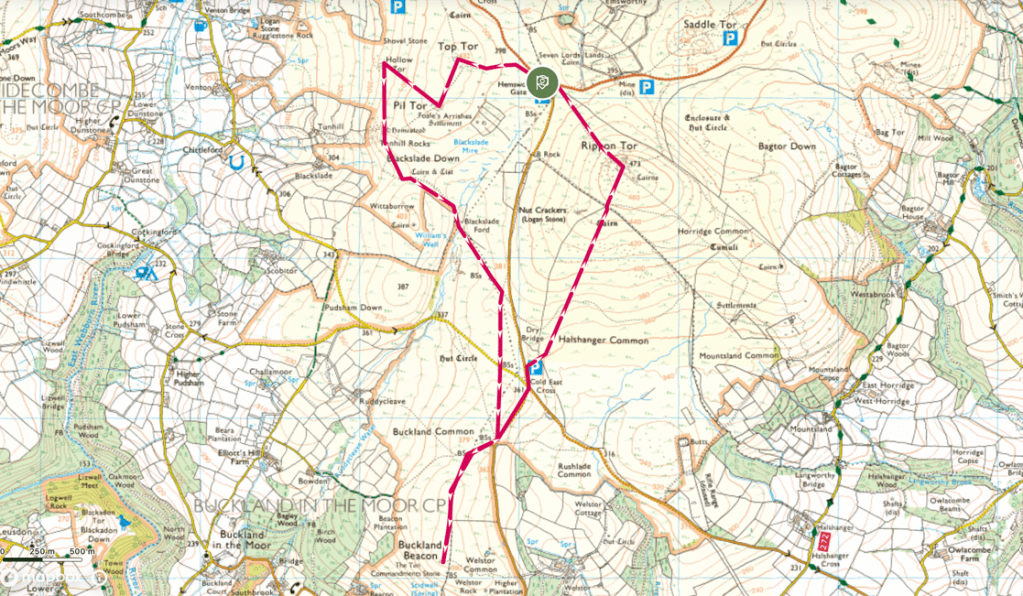 Heading across Buckland Common, I arrive at Buckland Beacon. The beacon, perhaps unsurprisingly given its name is a prominent outcrop located at the top of Buckland Common, overlooking Buckland-in-the-Moor, Holne Chase and Ashburton. The beacon was one of a number set up along the southern edge of the moor, which along with its sister beacons, was used to warn of the arrival of the Spanish Armada out in the English Channel, in a sequence I’m sure is reminiscent of the famous scene in Lord of the Rings.
