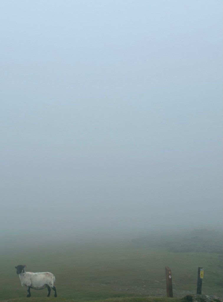 This walk starts out from the ever-brilliant Pork Hill Car Park, which I have raved about in a previous post. Starting from Pork Hill means that this walk customarily starts with ranging views over Tavistock and Plymouth, bookended by the River Tamar and Brentor Church, but not today. A heavy, swirling and rolling grey mist has come in, possibly conjured up by the evil Vixana (see my post here), maybe conjured up by the Dartmoor Piskies or potentially as a result of the airflows coming from the Atlantic Ocean (I’m sure my post on Dartmoor Mists will be able to shed some light). Whatever the origin of the mist, the result is the same and that is limiting visibility to about x10 meters. No matter, map and compass in hand I head northwards and uphill along the well-maintained track, to the top of Cox Tor.