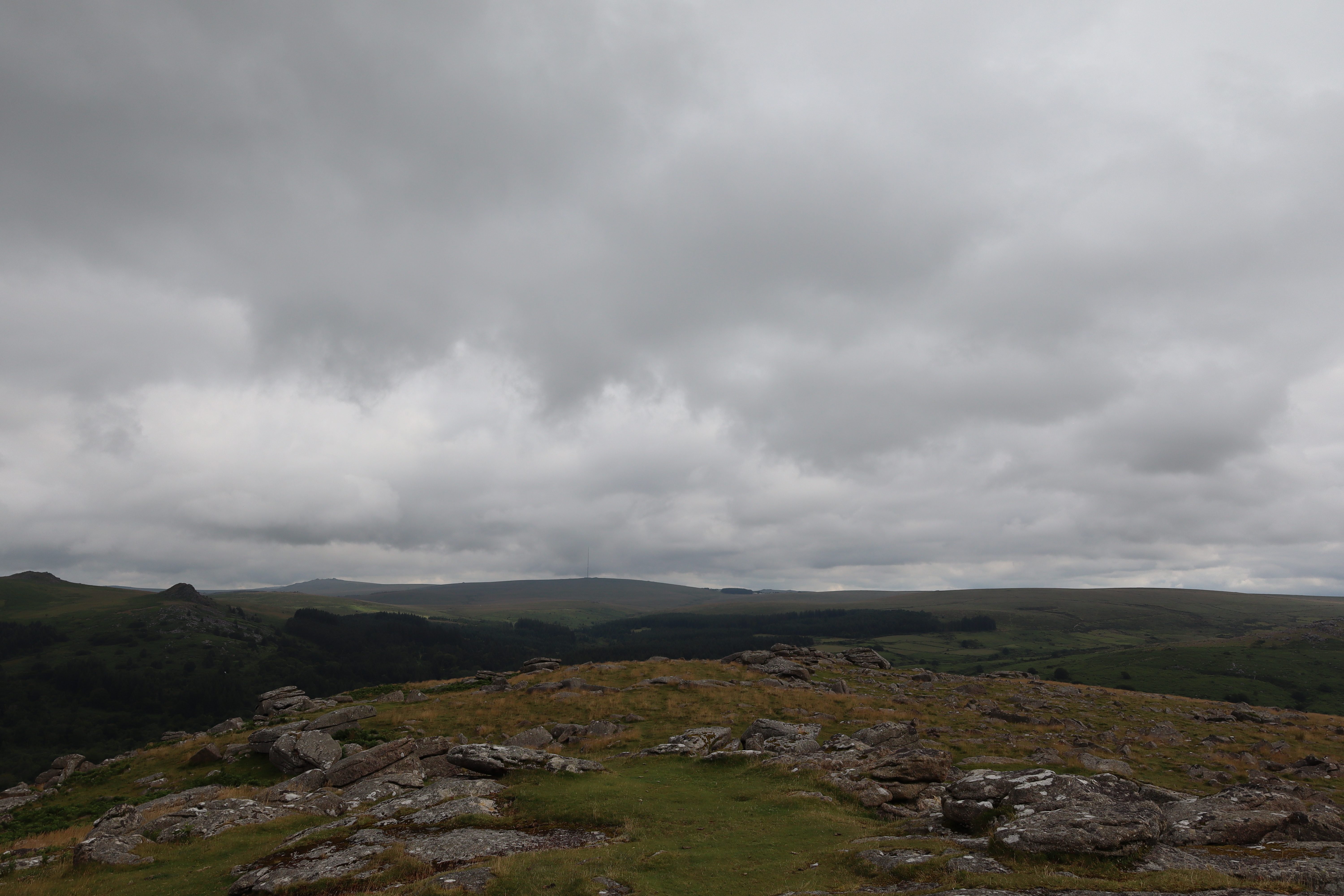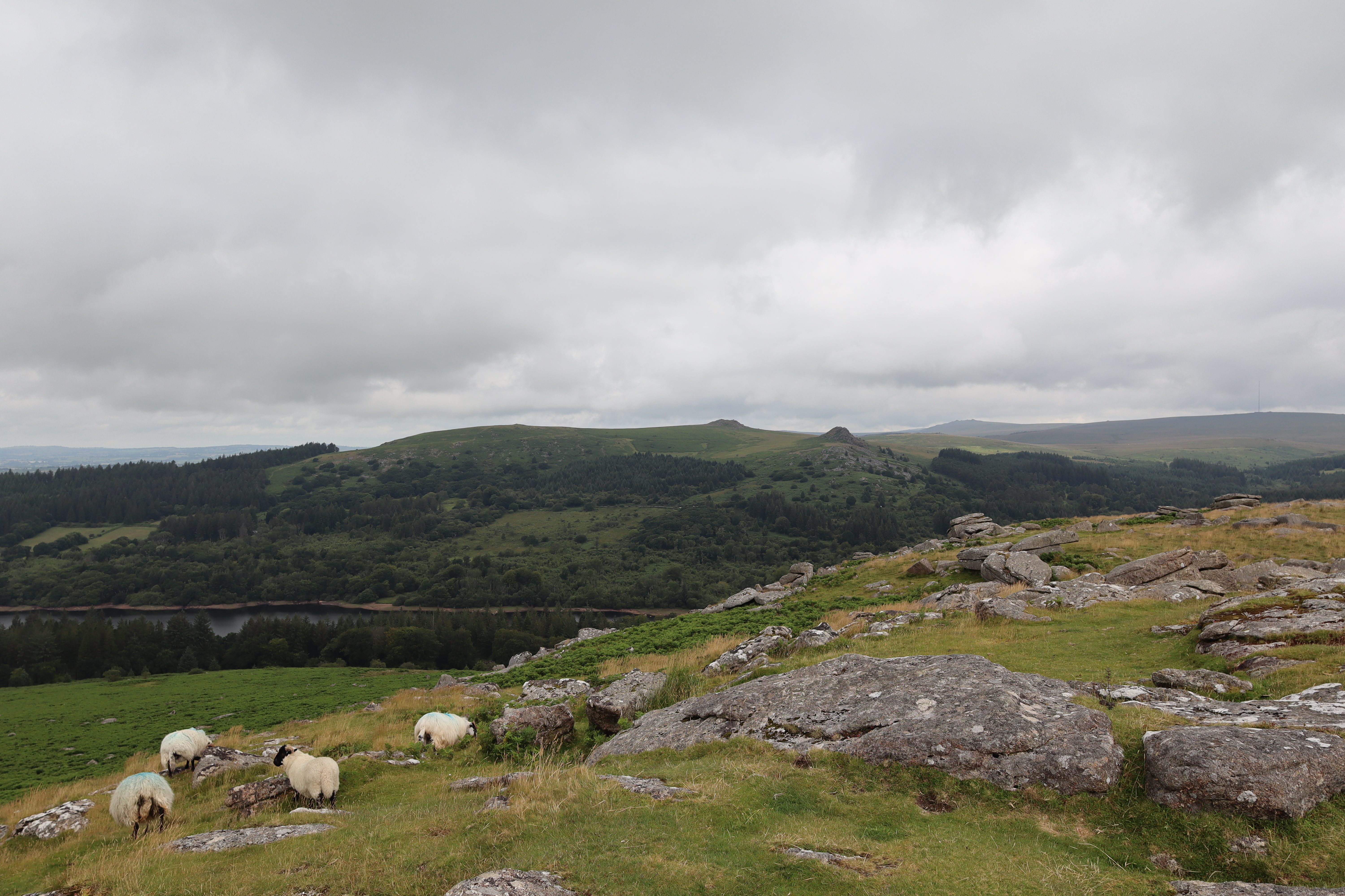 The climb is easy until you reach the clitter fields, strewn around the granite base of the Sheepstor, at which point the steepness increases. The slight effort required to climb through the clitter is well worth it however, as at the top you are greeted by sprawling views over the southern moor, on this occasion, accompanied by a flock of wary sheep, skittish Dartmoor Ponies and a crow soaring proudly overhead.