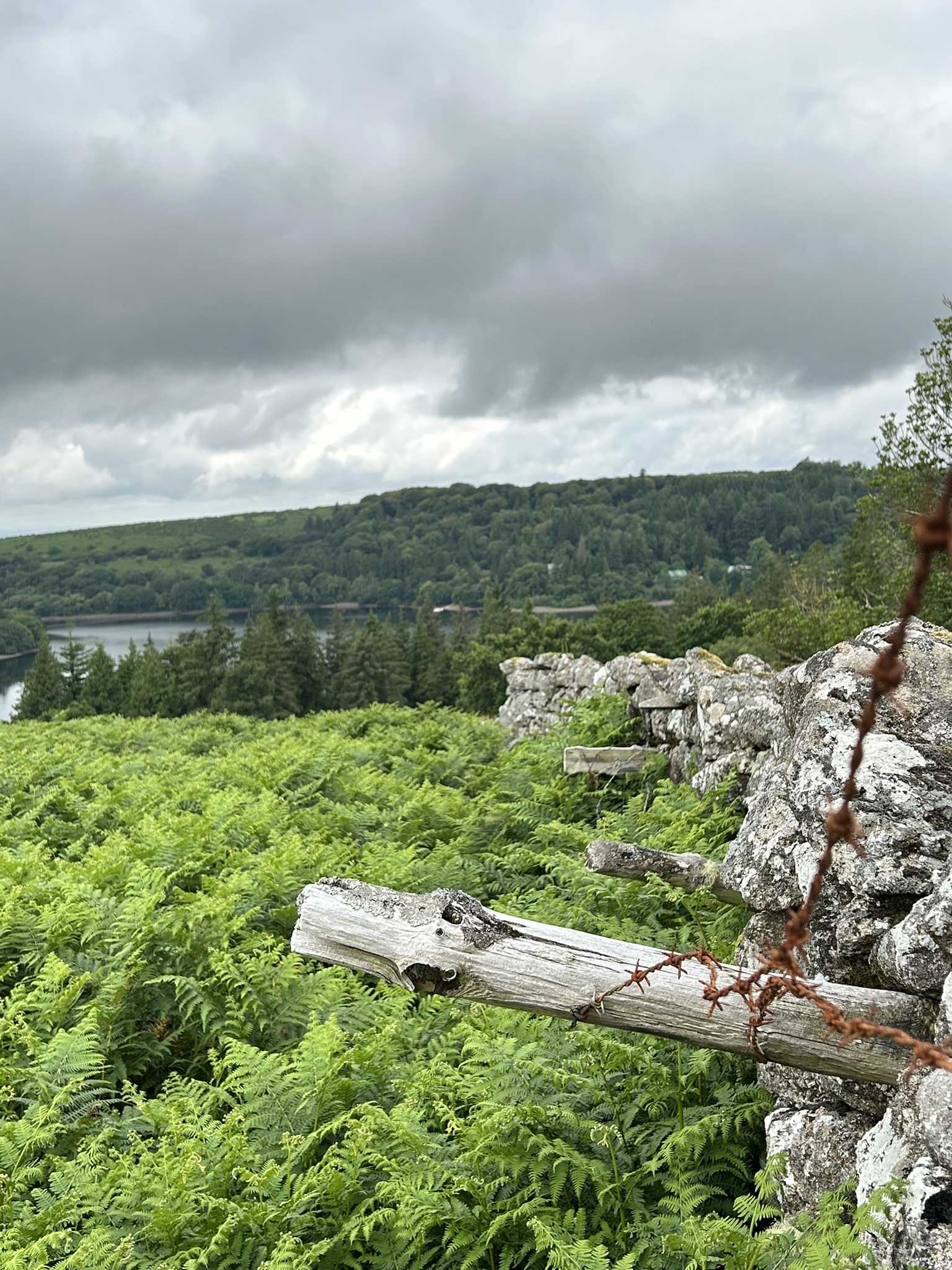 After weaving my way through the cyclists, runners, walkers and horse riders (who all have much more right to be there then me in my car) I arrive at the parking for Burrator Reservoir Arboretum. A gentle and peaceful start to the walk, I take the path through the plantation where there are bits of the arboretum where the battle signs of forestry management are clear, with trees cut down and piles of branches left to compost. The battle scars hewn through the necessary management of the site are contrasted by the healthy, growing well managed Fir, Larch and Pine trees, which are interspersed with moss covered rocks, babbling brooks and Foxgloves.