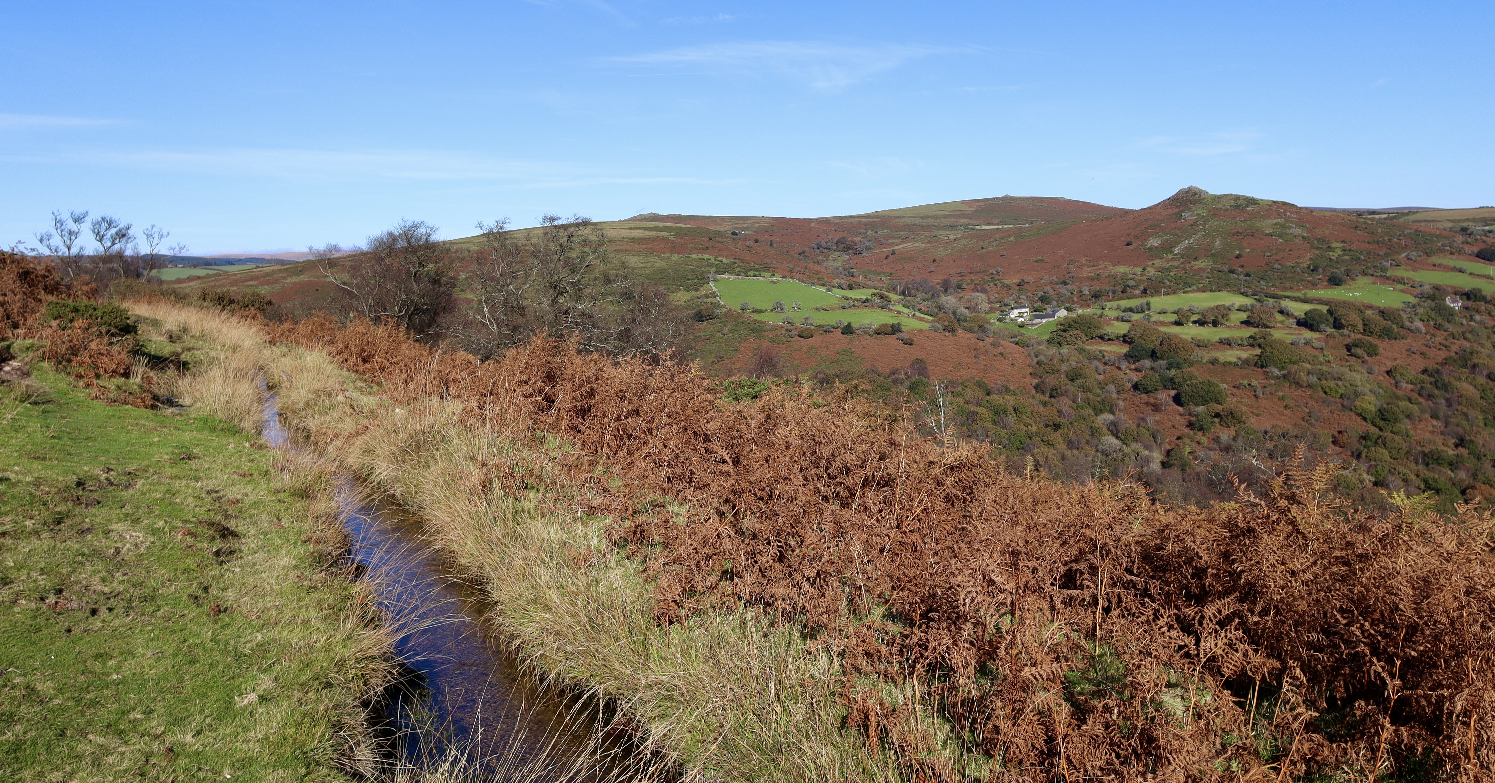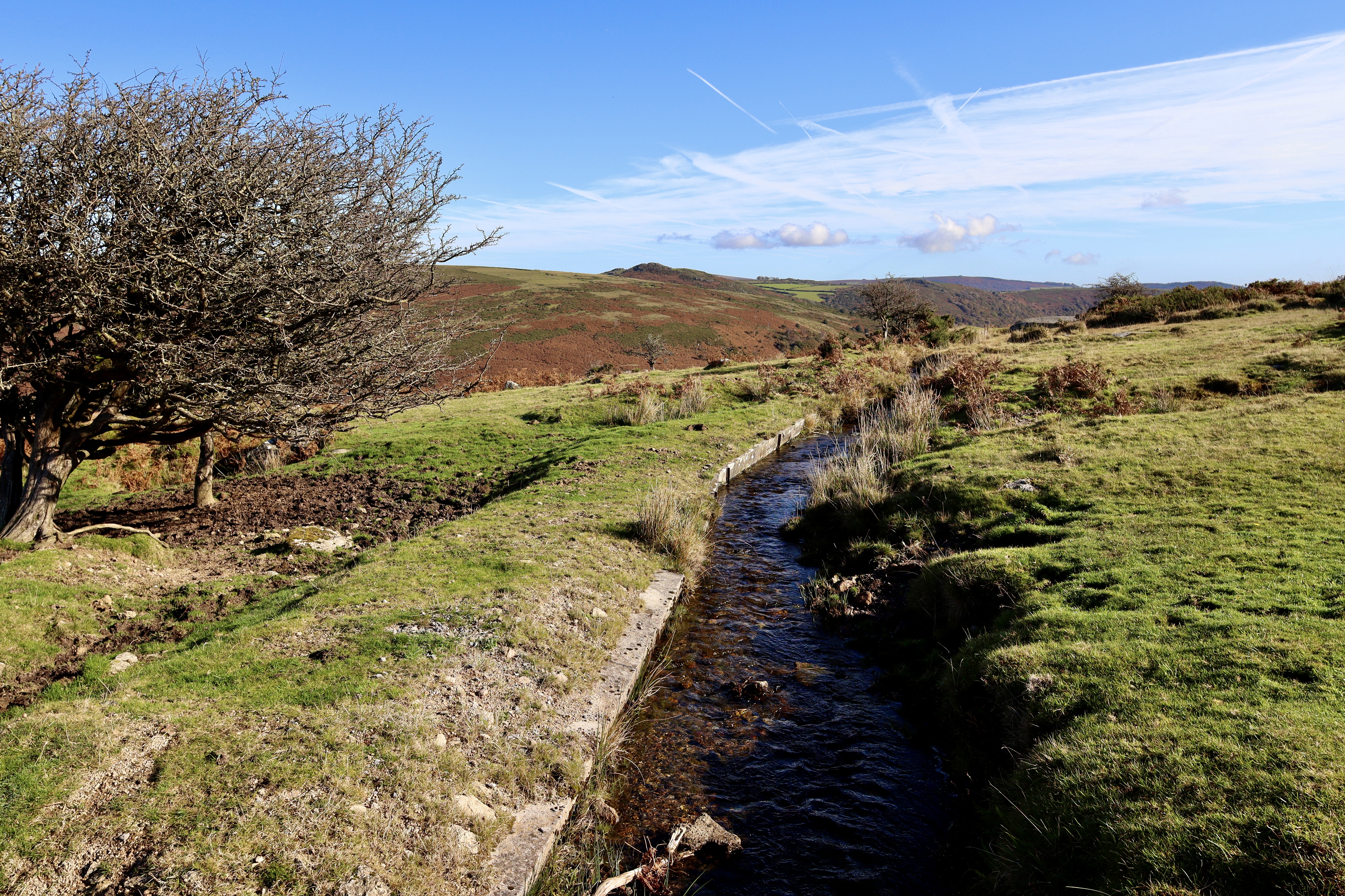 Leaving Combestone Tor behind, heading northwards downhill, we come upon Hamlyn’s Leat, which is one of the four main leats around Holne Moor which serves / served mines, farmsteads and the local communities. In particular, Hamlyn’s Leat was necessary to run a water wheel at the “Upper Mill”, a wool mill run by the Hamlyn family on the outskirts of Buckfast in the 19th century. The head of water provided by the Holy Brook wasn’t sufficient to drive the wheel, so the brook was supplemented with water from the high Moor, supplied via the Hamlyn’s Leat.