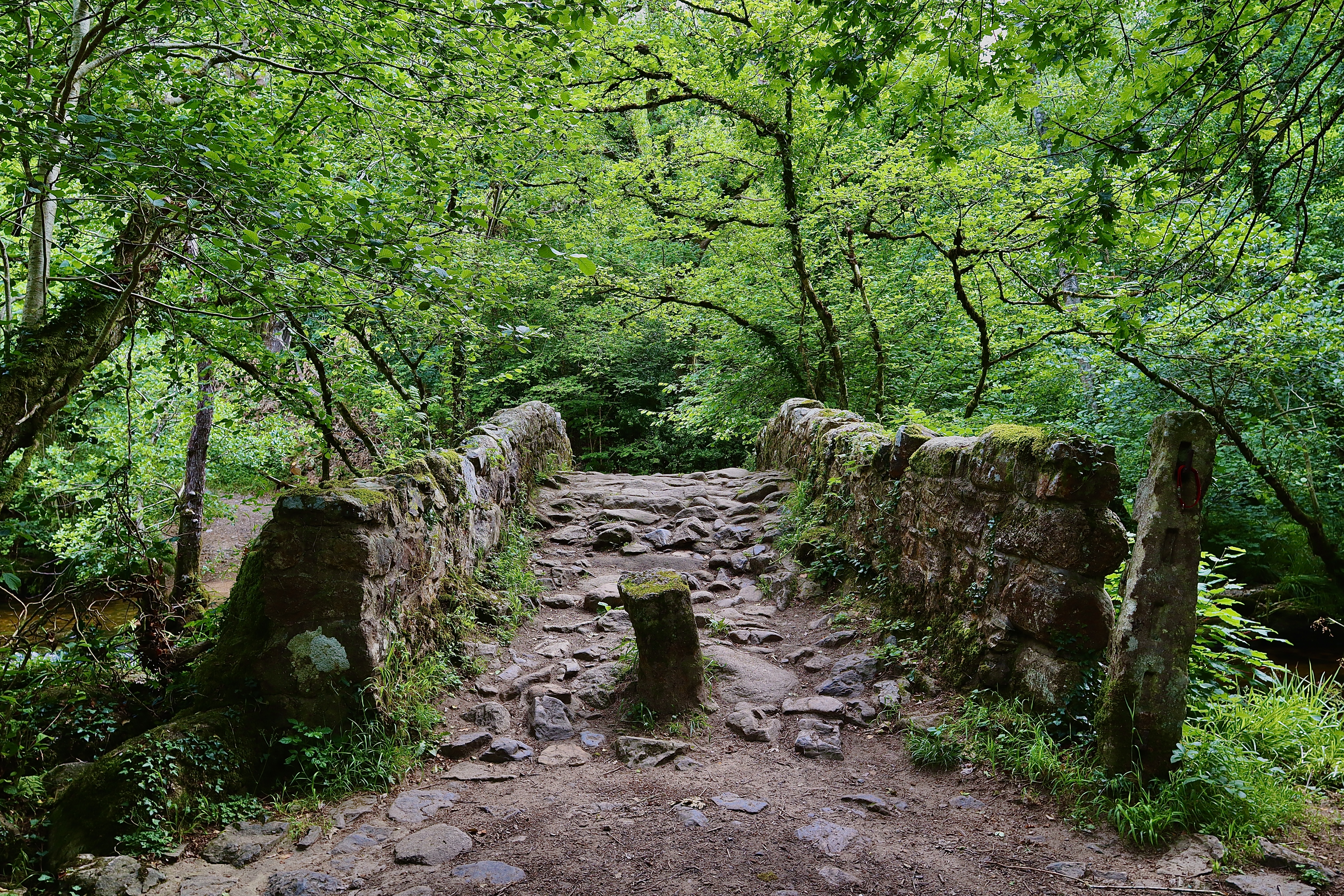 The descent from here is steep but swift, plunging us into a valley where the Dartmoor Way picks up our journey. This long-distance path soon brings us to our first crossing of the River Bovey, over a beautiful old stone bridge and into the enchanted depths of Hisley Wood. Here, the woodland is even wilder—gnarled trees lean over the path, and the sound of the river blends with birdsong and the rustle of unseen creatures.