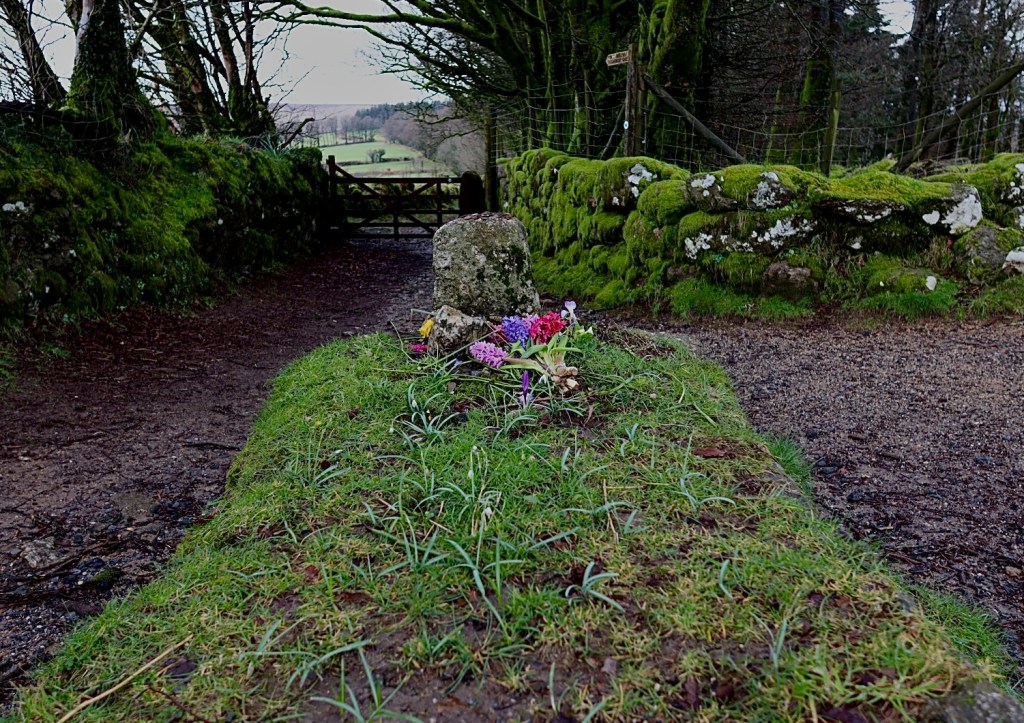 From here, the path descends the western slopes of Hayne Down and into a darker tale. At a quiet roadside sits Jay’s Grave, the final resting place of a young woman named Mary Jay. Said to be a suicide victim from the 18th century, her grave is forever adorned with fresh flowers and offerings, though no one ever sees who leaves them. The site is the source of countless ghost stories and local lore. The stories of Bowerman’s Nose and Jay Grave can be found here (Bowerman’s Nose) and here (Jay’s Grave)